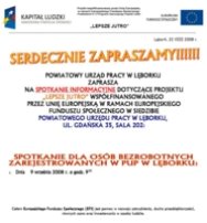 POWIATOWY URZĄD PRACY W LĘBORKU PONOWNIE ZAPRASZA NA SPOTKANIA INFORMACYJNE DOTYCZĄCE PROJEKTU „LEPSZE JUTRO” WSPÓŁFINANSOWANEGO PRZEZ UNIĘ EUROPEJSKĄ W RAMACH EUROPEJSKIEGO FUNDUSZU SPOŁECZNEGO W SIEDZIBIE POWIATOWEGO URZĘDU PRACY W LĘBORKU