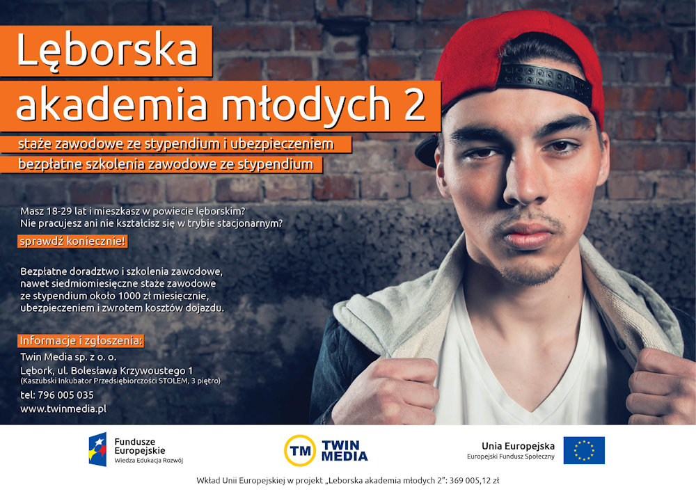 Twin Media Sp. z o.o. prowadząca Kaszubski Inkubator Przedsiębiorczości STOLEM w Lęborku zaprasza mieszkańców powiatu lęborskiego do skorzystania ze wsparcia oferowanego w ramach projektu „Lęborska akademia młodych 2”, który jest kontynuacją projektu „Lęborska Akademia Młodych”. W ramach projektu oferujemy doradztwo zawodowe, szkolenia zawodowe i staże przyuczające do zawodu.
