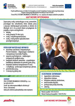 Rozpoczyna się rekrutacja uczestników do projektu „Łap nowe wyzwania” relizowanego na terenie województwa pomorskiego. Udział w projekcie jest bezpłatny, a Uczestnikom Projektu zapewnione będą stypendia szkoleniowe