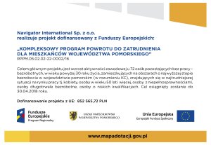 Navigator International Sp. z o.o. zaprasza do udziału w projekcie „KOMPLEKSOWY PROGRAM POWROTU DO ZATRUDNIENIA DLA MIESZKAŃCÓW WOJEWÓDZTWA POMORSKIEGO”.