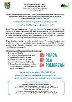 Powiatowy Urząd Pracy w Lęborku informuje, iż pozyskał dodatkowe środki Funduszu Pracy pozostające w dyspozycji Ministra Rodziny, Pracy i Polityki Społecznej na realizację programów: